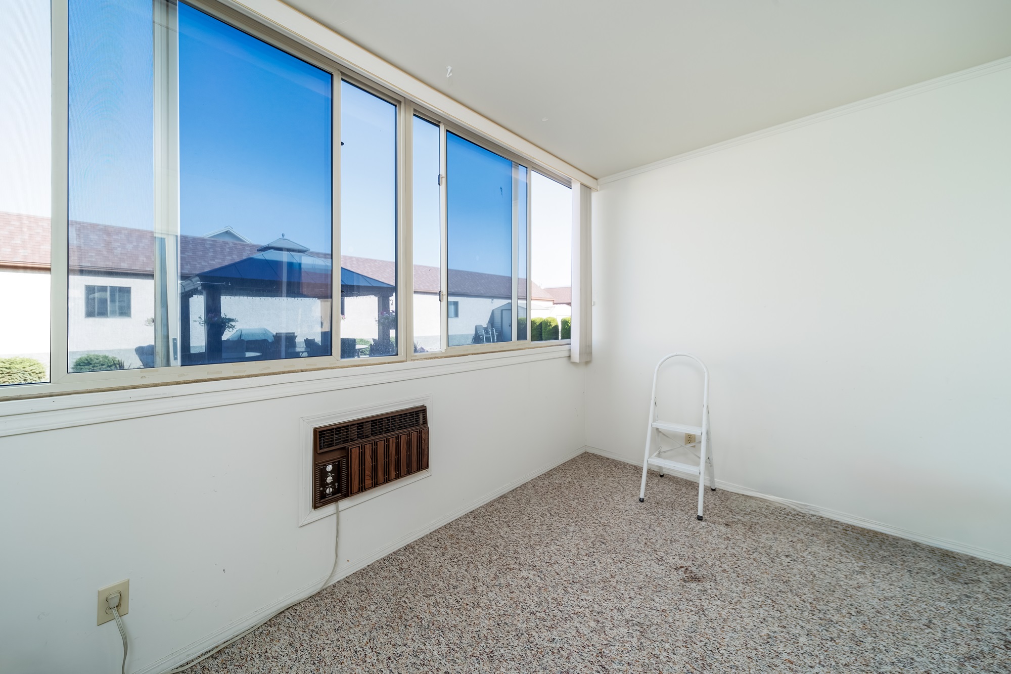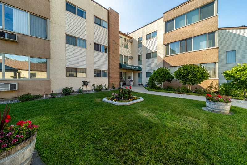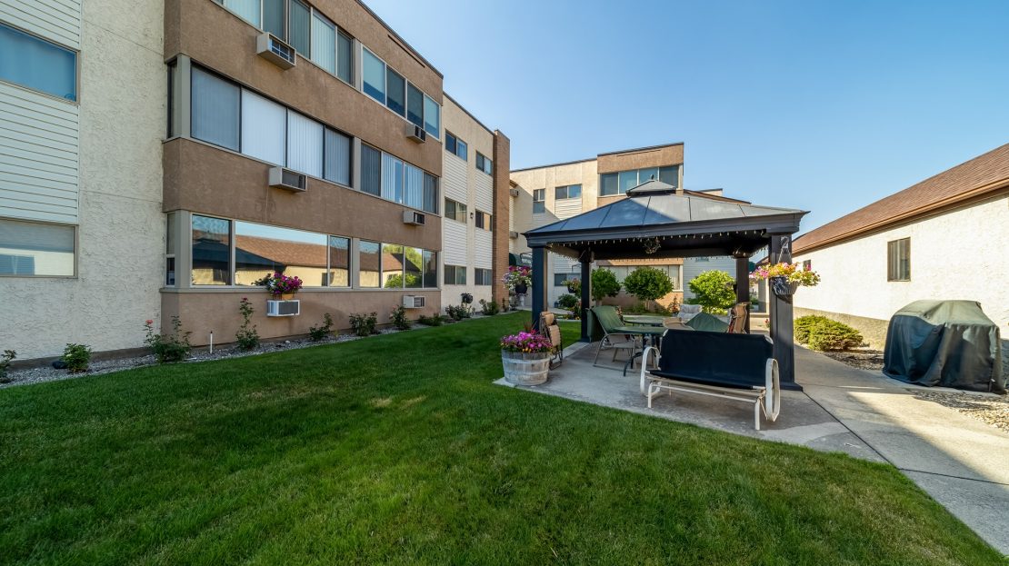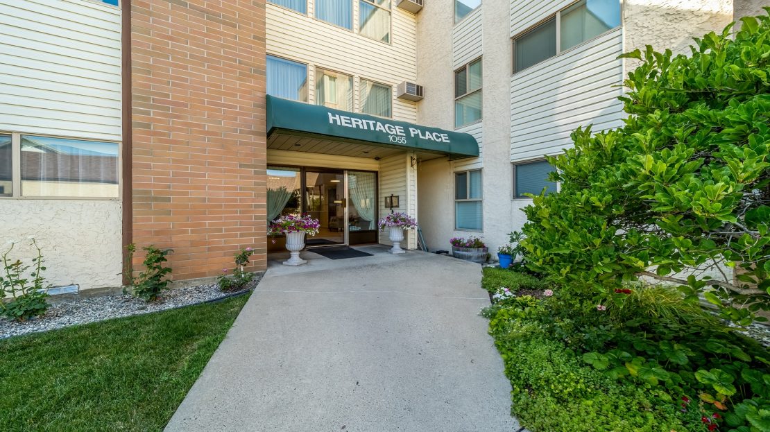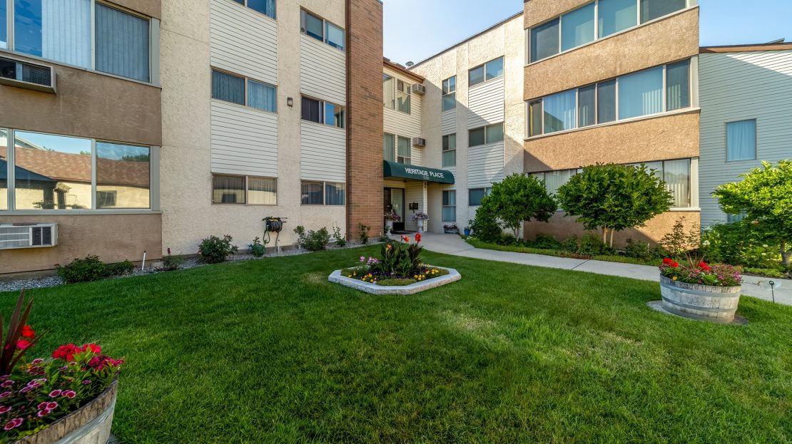 Centrally located 55+ building, Heritage Place. 2 bed, 2 bath property! One notable feature of this unit is the enclosed sun-room, which creates a cozy and relaxing space to enjoy the outdoors while indoors. Beautifully maintained grounds with a gazebo area. This unit comes with 1 covered parking stall and storage locker. No pets or rentals allowed. The prime location of this property is a great advantage, as it is within close proximity to shopping areas, public transit, and various amenities. This ensures convenience and easy access to everything you may need! Monthly fee includes property taxes for those 65+, water ,sewer ,hydro, garbage, snow removal, building insurances and most building maintenance, contingency reserve, landscaping, management, recreational facilities, members under age 65 pay an additional 250.00 per year.